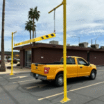 Barrier Stop Defense Manufactures fixed or swinging height restrictor USA barriers that are designed to give a highly visible warning in areas where vehicle height is restricted such as underground car parks, in and around parking areas with canopies and shade structures, low bridges, and other areas where overhead obstacles are a challenge. For extra wide driveways, check out our cable height restrictors. Engineer stamped and guaranteed to work for your specific needs.