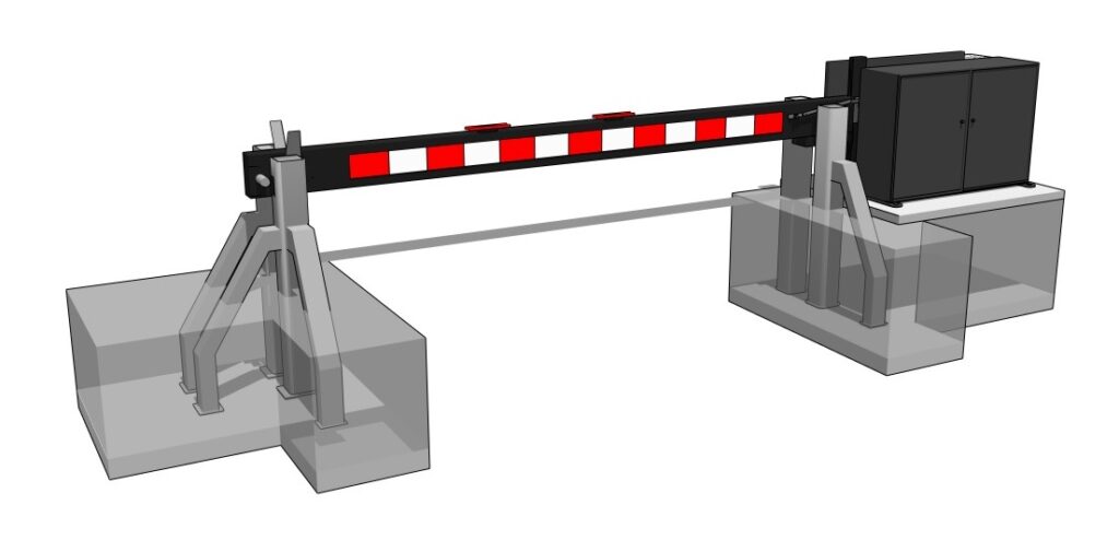 The beam moves up and down (or sometimes side to side) to open or close the roadway.